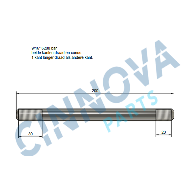 Tubo de 9/16" (200 mm de longitud) de alta calidad, apto para aplicaciones de hasta 6200 bar (87 000 PSI). Fabricado íntegramente según las especificaciones del fabricante original (OEM). Compatible con sistemas de alta presión Flow, Avure y KMT, entre otros. Disponible en stock o a medida.